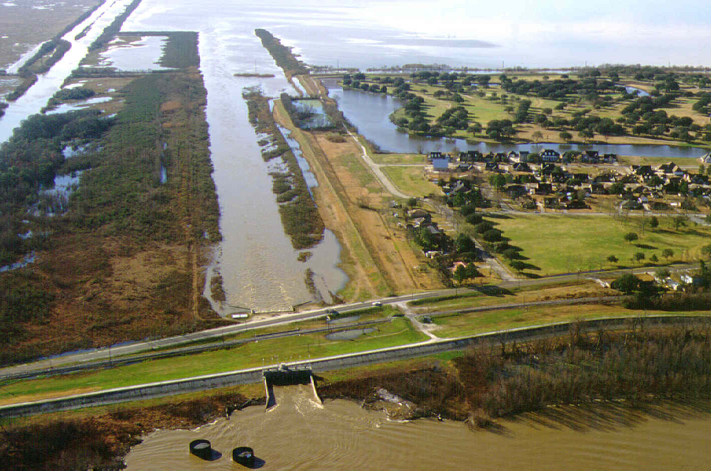 It was here, during the Great Mississippi River Flood of 1927, that engineers dynamited the Mississippi River levee in an effort to relieve pressure on the flood system and save New Orleans, sending floodwaters across St. Bernard Parish and into the Breton Sound marshes. Decades later, the same location became the site of Louisiana’s first major experiment in reconnecting the Mississippi River to its wetlands. Completed in 1991, the Caernarvon Freshwater Diversion was designed to push back saltwater intrusion and replenish marshes that had been cut off from the river’s freshwater and sediment. The project quickly became both a milestone in coastal restoration policy and a source of controversy, as oyster fishermen argued the diversion disrupted productive oyster grounds, leading to the well-known Avenal litigation.